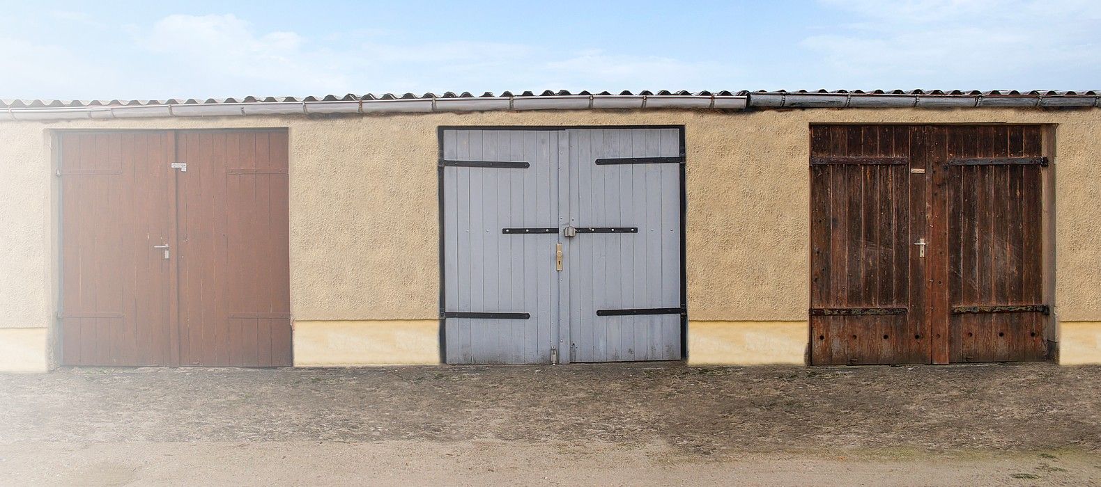 Neben der großen Fläche sind viele Garagen ganz unterschiedlicher Art entstanden, das verleiht der Anlage einen rustikalen Look. Neben Holztüren und alten Containern wurde damals alles verwendet. Die rustikalen Bauten erinnern an die gute alte Zeit. Lassen Sie sich aber nicht täuschen, früher hat man für die Ewigkeit gebaut und so stehen die Garagen hier noch wie zur Bauzeit, nahezu unverändert.